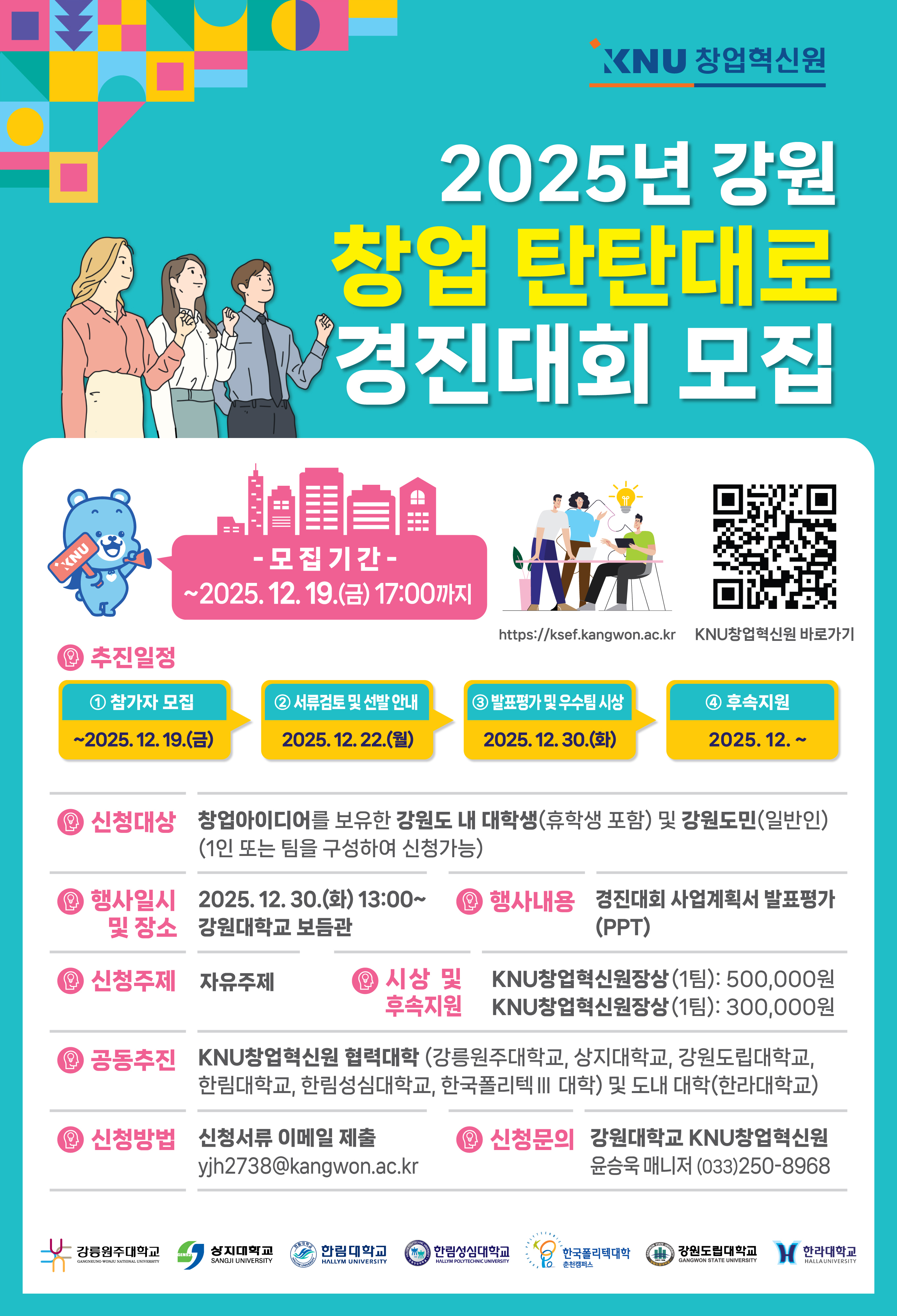 [KNU창업혁신원] 2025년 창업중심대학 강원 창업 탄탄대로 아이디어 경진대회 모집 홍보 협조 요청