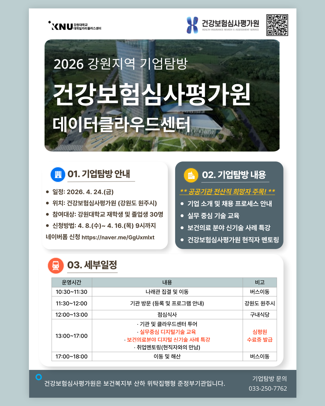 대학일자리플러스센터 기업탐방 프로그램 안내(건강보험심사평가원)